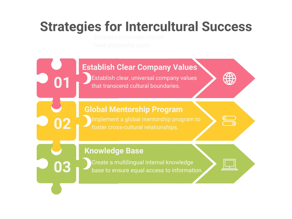 Stay curious: Encourage cultural exchange programs within your organization. Create a "Cultural Ambassador" role for each team to share insights about their culture.